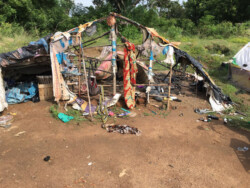 So möchten wir wenigstens einigen von ihnen eine bessere, hoffnungsvollere und lebenswürdigere Zukunft ermöglichen. Die Großfamilie lebt zum Teil heute noch in Plastikzelten. Das von der Regierung versprochene Haus wurde seit nunmehr 8 Jahren immer noch nicht begonnen zu bauen. Traurig für diese Menschen. Dennoch haben Sie eine Chance verdient! Eine neue Plane kostet €20, aber die Familie kann sich das nicht leisten. Der nächste Monsun kommt unweigerlich und fragt nicht, wo die Familie einen trocknen Platz zum Schlafen hat. Wenigstens ist zurzeit ein Teil ihrer wenigen Habseligkeiten teilweise geschützt.