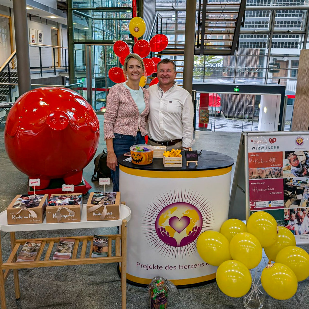 Während der Weltsparwoche vom 30.10.-03.11.2023 durften wir erneut, wie bereits in 2022, in den Filialen der Kreissparkassen in Esslingen, Kirchheim und Nürtingen mit unserem Stand vor Ort sein. Die KSK schenkte jedem Kind für sein abgegebenes Sparkässle 5€ für wohltätige Zwecke. Wir freuen uns sehr, dass wir durch die vielen Spenden der Kinder an unseren Verein insgesamt 3.610€ für die Projekte “Sarah Boss“ in Kirchheim und die „Kunst- und Maltherapie für traumatisierte Kinder“ in Nürtingen sammeln konnten.