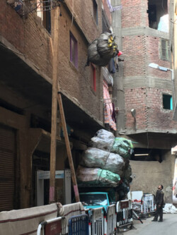 In Ägyptens Hauptstadt gibt es so gut wie keine kommunale Abfuhr – die Entsorgung des Abfalls übernehmen “freiberufliche” Müllsammler in den jeweiligen Stadtteilen, für die sie zuständig sind.
